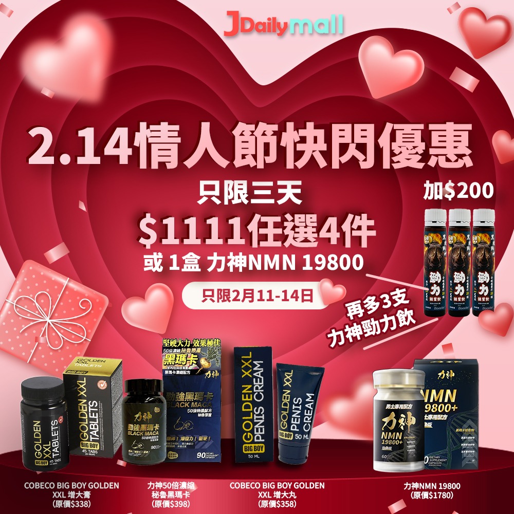 【情人節$1111/4盒】限時3日 – $1111 任選4盒 (黑瑪卡/增大膏/增大丸) 或 力神NMN19800 一盒