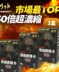 力神黑瑪卡 50倍濃縮 萬寧黑熊版 3盒優惠裝 純秘魯黑瑪卡 50倍超濃縮精華,買 3 送 3 勁剛丸!專為長期調理男士機能而設,有效提升持久力、硬度堅挺、爆發力及激發慾望,同時補氣血、減疲勞、精神旺盛。香港 GMP 製造,天然無副作用,萬寧黑熊版正品保證,性價比超高!