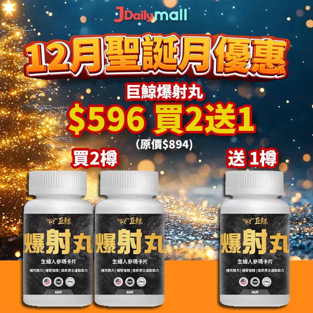 【12月聖誕優惠買2送1】巨鯨 - 爆射丸生蠔人參瑪卡片(60粒)環保樽裝 買2送1