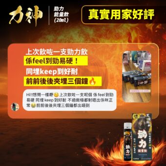 「第一次試即效丸,2小時內feel到!硬度維持好耐,夫妻生活質素UP。感謝力神,男人救星!」