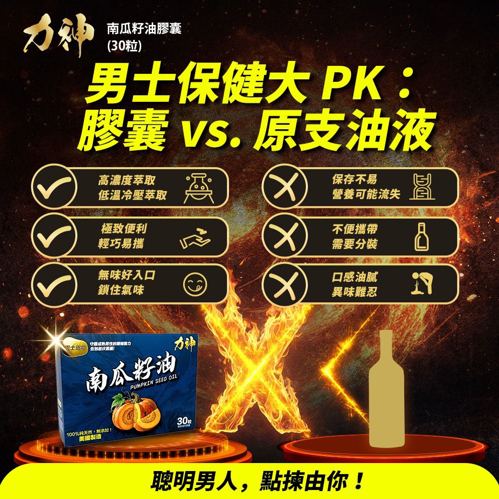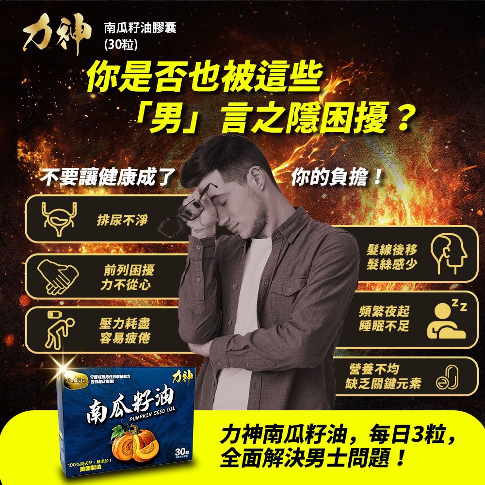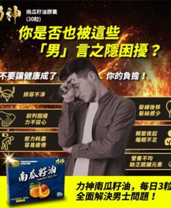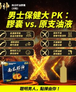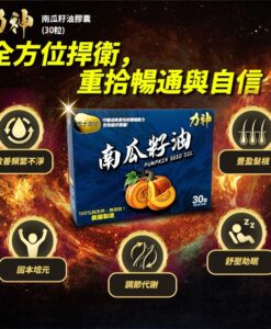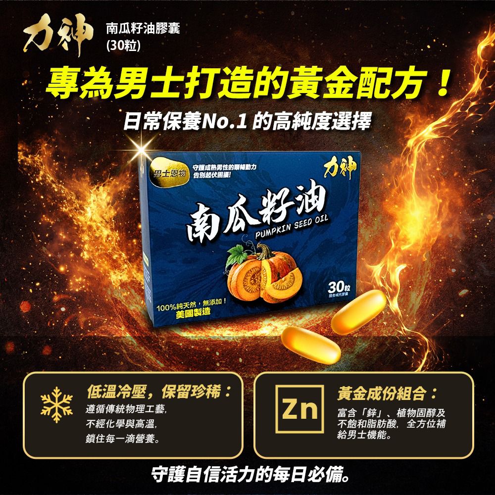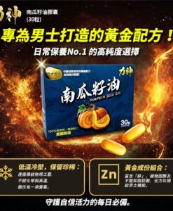 力神南瓜籽油採用美國低溫冷壓技術,完整保留天然鋅與植物固醇。專為關注泌尿健康及脫髮問題的男士設計,有效維持水道順暢支持男士生理平衡。膠囊設計無異味,助你重拾自信動力,由內而外展現自信魅力